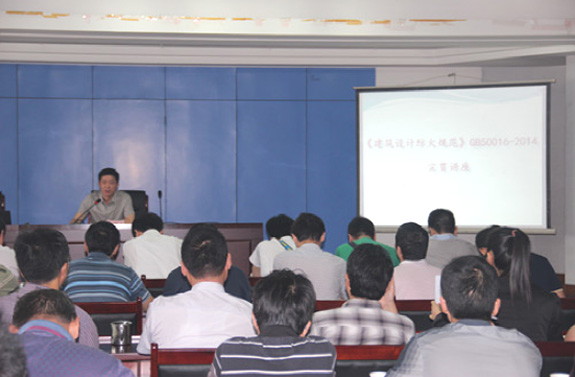 市規(guī)劃院院長賀玉龍傳達(dá)了“省《規(guī)范》GB50016-2014宣貫培訓(xùn)”精神,并與參加省宣貫培訓(xùn)的胡自立、崔睿、李文成、沈光紅、陳潔、密齊峰六位同志一起,分別從規(guī)劃選址、平面布局、規(guī)劃和建筑工程設(shè)計(jì)等側(cè)重點(diǎn),就新老規(guī)范的變化、新規(guī)范中的總則、術(shù)語和符號(hào)、廠房和倉庫、甲乙丙類液體及氣體儲(chǔ)罐(區(qū))和可燃材料堆場、民用建筑、建筑構(gòu)造、滅火救援設(shè)施、消防設(shè)施、電氣、供暖通風(fēng)和空氣調(diào)節(jié)等方面的重點(diǎn)內(nèi)容,向與會(huì)人員進(jìn)行了傳達(dá)和講解。