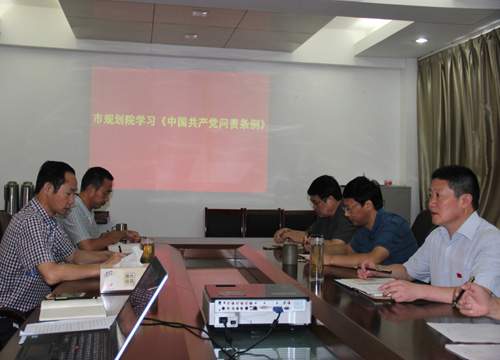 2016年9月1日上午,市規(guī)劃設(shè)計(jì)院召開全院干部大會(huì),組織學(xué)習(xí)《中國(guó)共產(chǎn)黨問責(zé)條例》。會(huì)議由院黨支部書記、院長(zhǎng)賀玉龍同志主持,院班子及全體室(隊(duì))干部參加了會(huì)議。