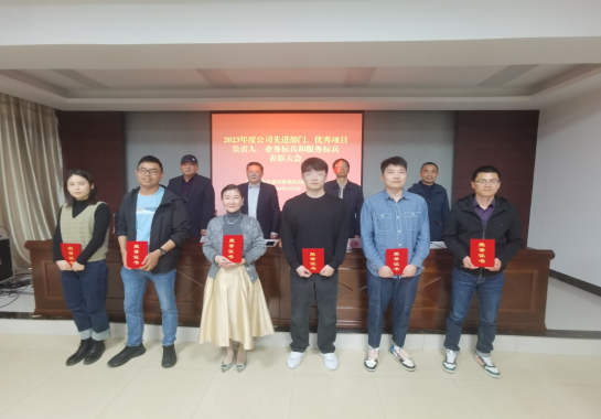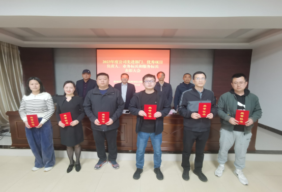 根據(jù)會議議程,公司董事、副總經(jīng)理王士才同志宣讀了《關(guān)于表彰2023年度公司先進部門、優(yōu)秀項目負責人、業(yè)務標兵和服務標兵的決定》,公司領(lǐng)導給獲得表彰的先進部門、優(yōu)秀項目負責人、業(yè)務標兵和服務標兵頒發(fā)獎牌和獲獎證書。