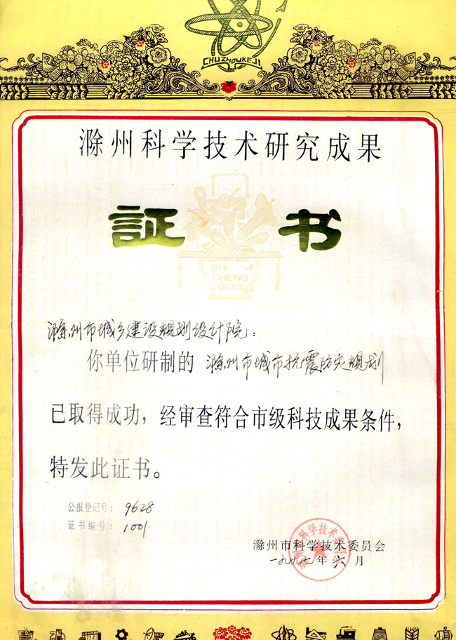 滁州市抗震防災(zāi)規(guī)劃(市級(jí)科技成果)